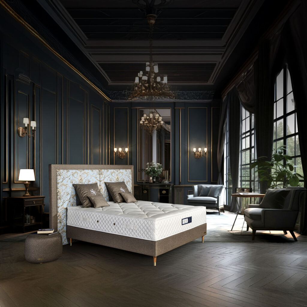 Waarom een andere merknaam verzinnen? ‘Le Sommeil Français’ verwoordt precies de essentie van de premium collectie. De verwevenheid met de Franse savoir-vivre en luxe, de alliantie tussen haute couture, haute technologie en haute comfort. De collectie ademt ‘savoir-faire’ — en ‘savoir-sommeiller’.